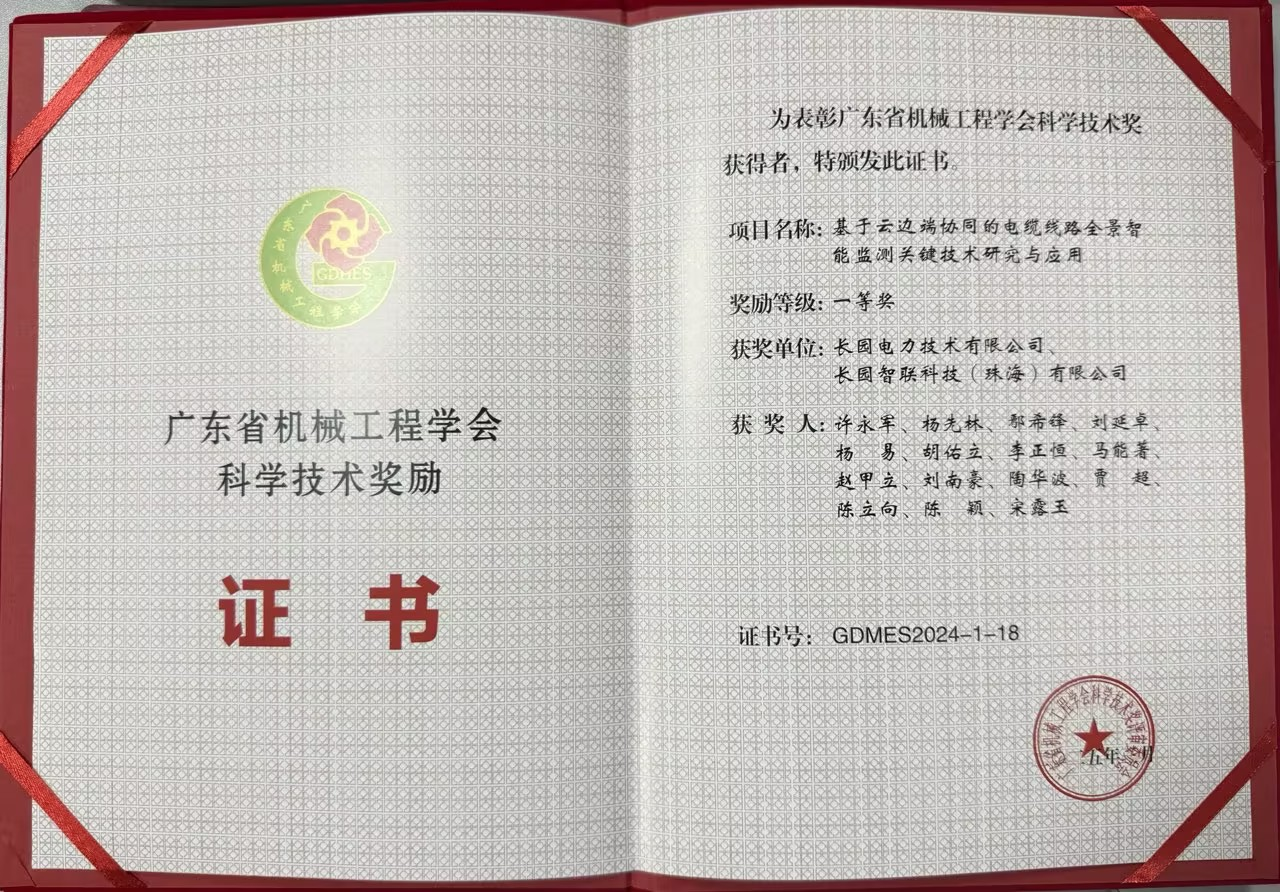 星空xk科技集团旗下子公司星空电力技术有限公司(简称:星空电力)与星空智联科技(珠海)有限公司(简称:星空智联)凭借 “基于云边协同的电缆线路全景智能监测关键技术研究与应用” 项目脱颖而出,一举摘得“2024年度广东省机械工业科技奖一等奖”“广东省机械工程学会科技奖一等奖”两项荣誉,这是星空在电力监测技术领域的卓越实力与创新突破。